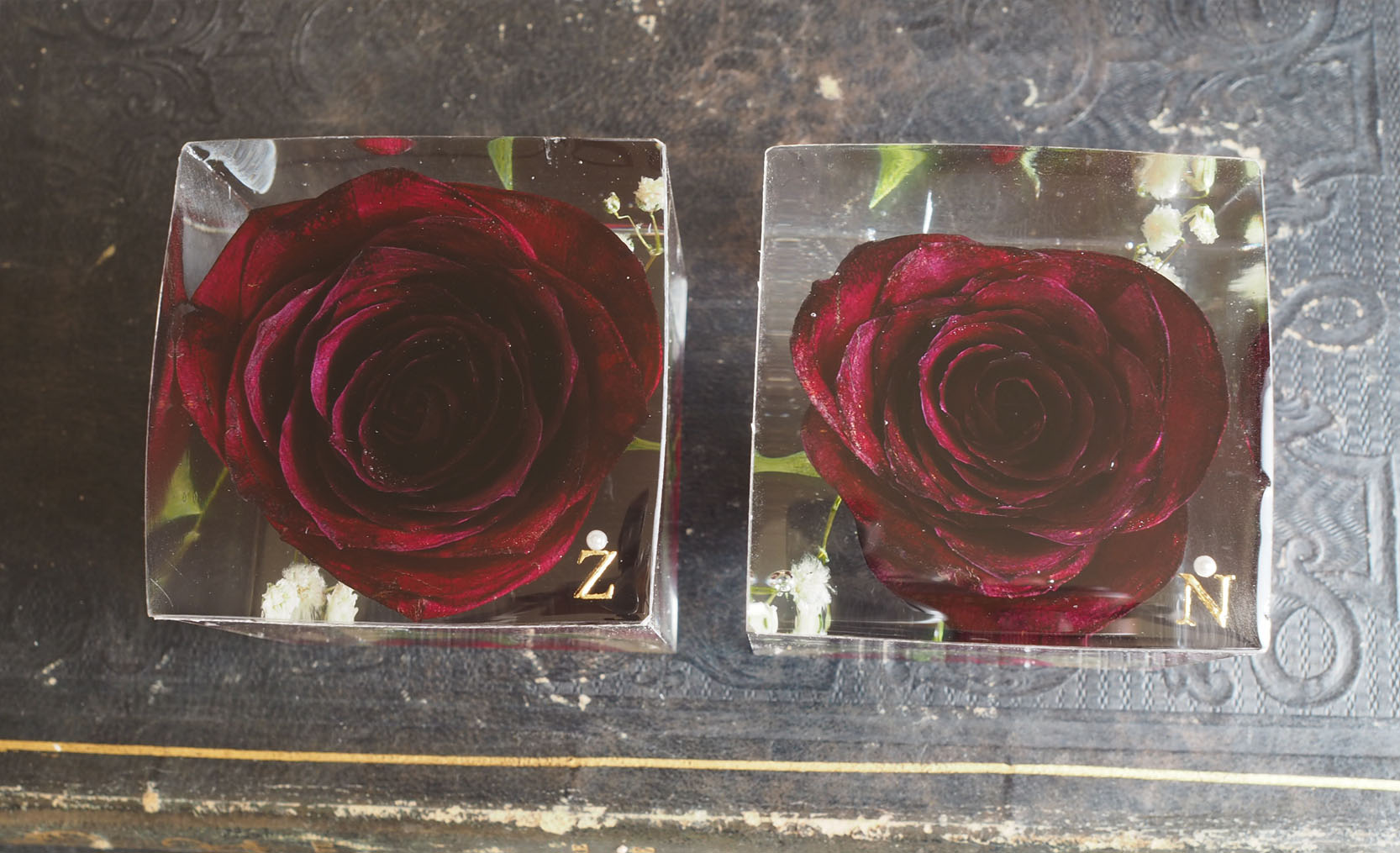 プロポーズでバラをもらい貰った本数も多かった為、何かできないかと思いインターネットで調べているとhappyresinさんを見つけました。