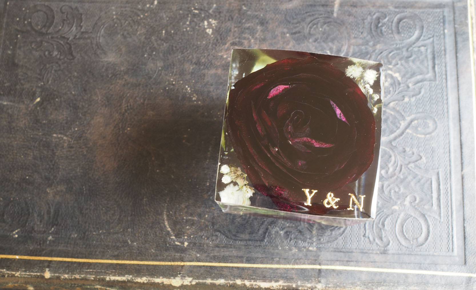 サプライズでもらったお花を枯らしてしまうのは嫌だったので何とか残したく、検索するとブリザーブドフラワーや押し花の作品はどれも高額でしたが樹脂に埋め込む作品をみてぜひお願いしたいと思いました。