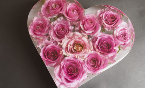 「プロポーズのバラ保存専門店 happyresin。 レジン歴15年、5,000件以上の実績で、 大切な想い出をカタチに残します。」