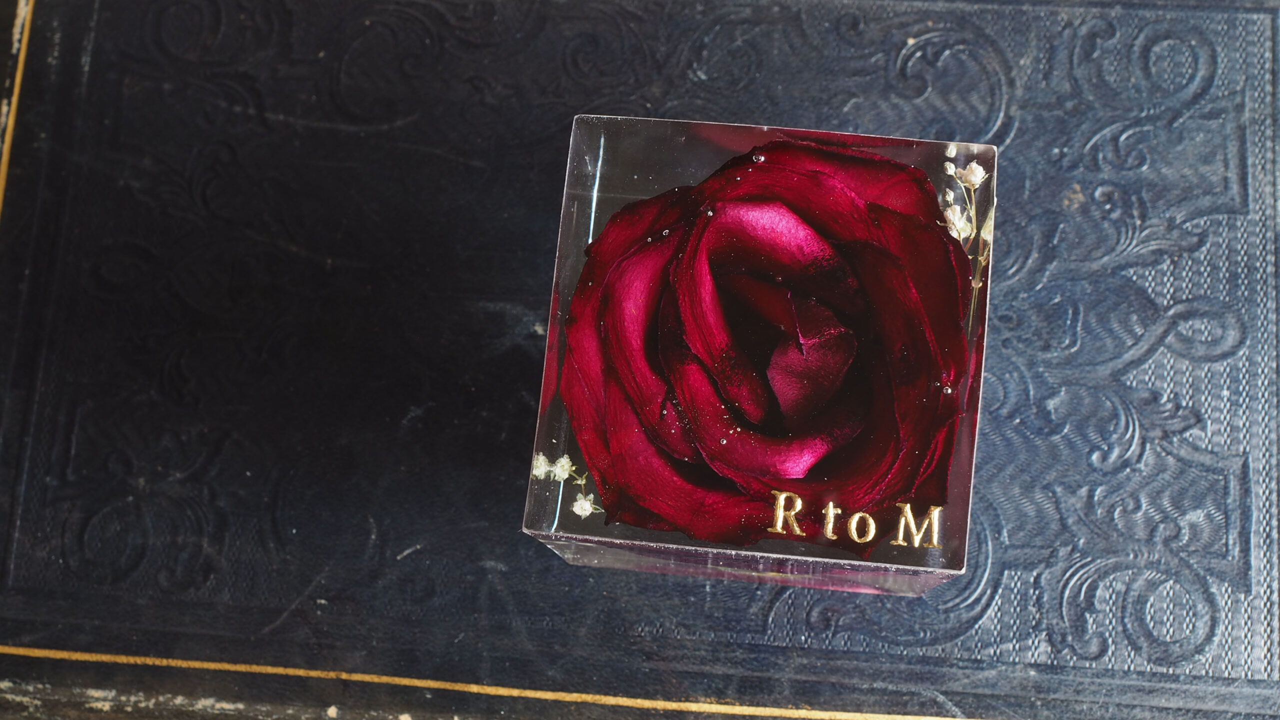 プロポーズで頂いた薔薇を形として残せるものがないか探していました。