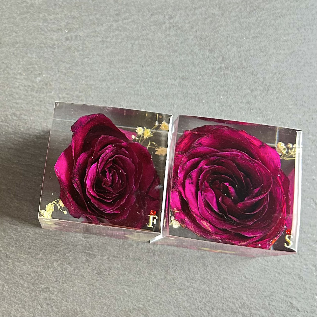 制作事例2025.05.022025.11.17【制作事例】 友人が形に残しているのをみて私も残したくなった case750 ポスト シェア はてブ 送る Pocket東京都練馬区にお住まいのT様からご依頼頂きました。ご依頼頂いた商品プロポーズのバラをキューブリングピローした商品ページはこちらリングピロー表面before お客様からお預かりしたものお客様からお預かりしたお花ドライフラワーにしたものお客様の感想プロポーズされた際にドライフラワー作成している友人がいたので、私自身も何か形に残して保存できないか調べていた際に見つけました。人生に1回の機会のため、丁寧に対応いただき、想い出を保存いただきありがとうございます。ご依頼デザインリングピローバラかすみそうイニシャル F(チャトン レッド) S(チャトン レッド)プロポーズのバラを記念に残す 商品一覧ページはこちら関連記事お客さまの想い出をカタチにした制作事例