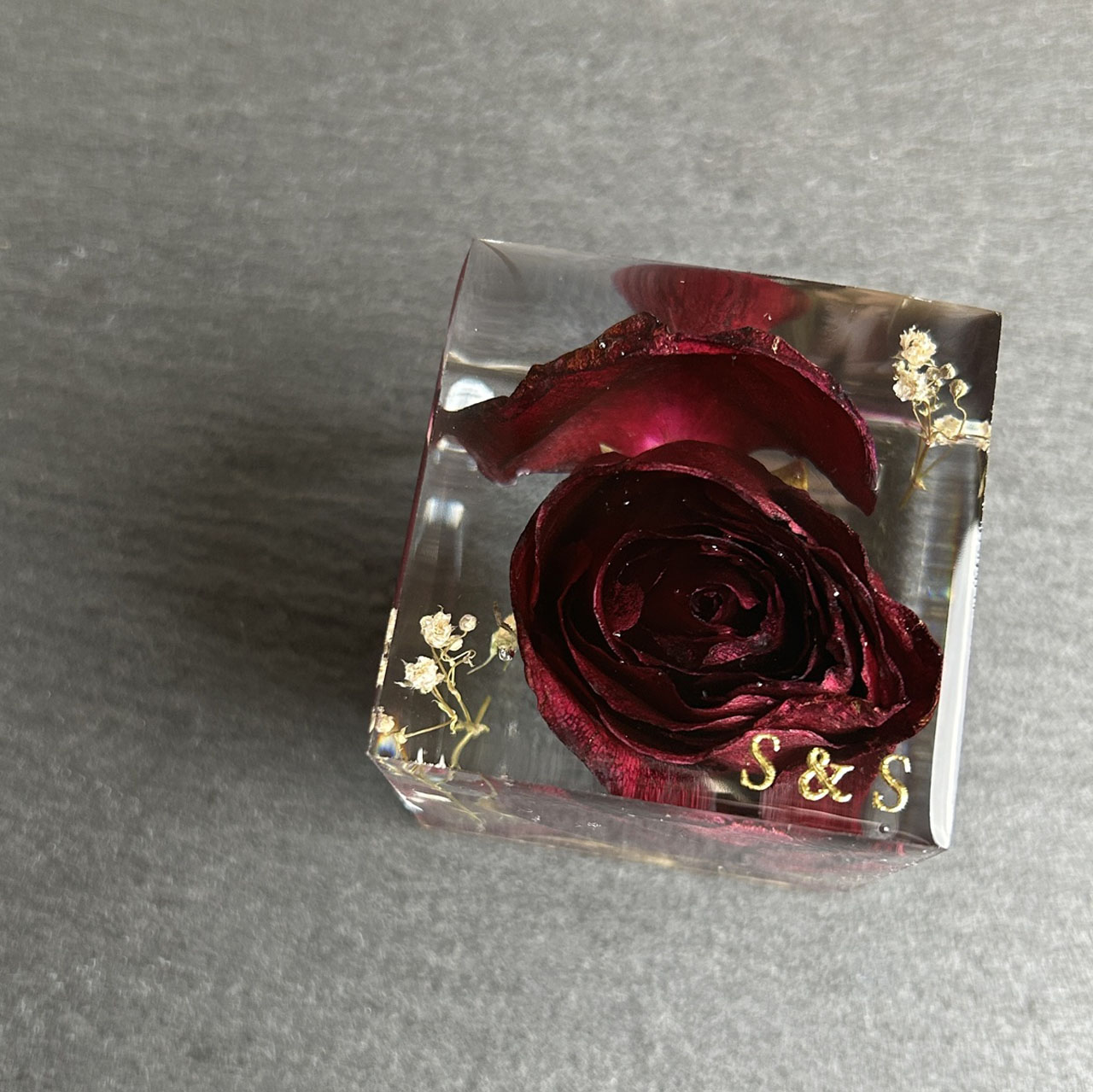 制作事例2025.05.172025.11.25【制作事例】プロポーズで頂いた花を記念に残したい case783 ポスト シェア はてブ 送る Pocket兵庫県神戸市にお住まいのT様からご依頼頂きました。ご依頼頂いた商品プロポーズのバラのキューブオブジェの商品ページはこちらキューブオブジェ表面キューブオブジェ裏面(オプション)before お客様からお預かりしたものお預かりしたお花ドライフラワーお客様の感想注文のきっかけは、プロポーズで頂いた花を記念に残しておきたいと思って調べていたところ、happyresinさんの加工が綺麗だったことです。部屋に飾っておくといつでも見れるので、綺麗に仕上げていただけて嬉しいです。ご依頼デザインキューブオブジェバラかすみそうイニシャル S&S裏面日付入れ 2025.6.21プロポーズの想いをカタチに残す 商品一覧ページはこちら関連記事お客さまの想い出をカタチにした制作事例